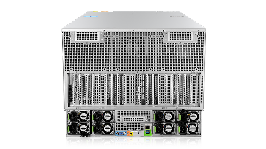 CPU-GPU直连,支持8张600W双宽、3宽、3.5宽、4.5宽 GPU,具有高性能和并行计算、高扩展性、高可靠、高能效、智能维护、模块化设计、生态开放等特点,满足各种大模型训练、AI推理、图形处理、生成式AI等需求。适用于大模型、云游戏、人工智能、云计算、虚拟化、大数据分析、数字孪生等应用场景。